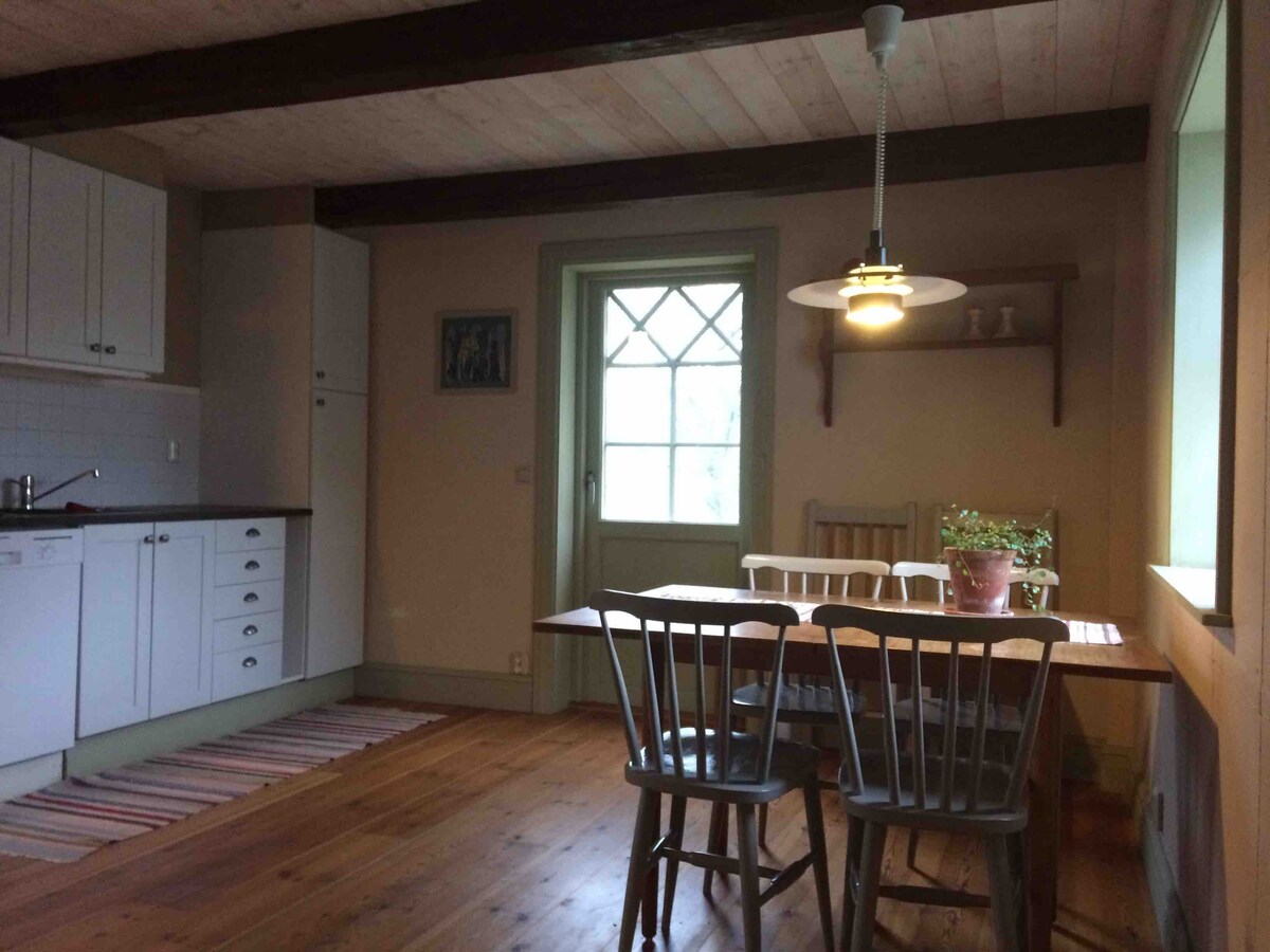 Відпочиньте разом у комфортному житті в чарівній обстановці. Повністю модернізована будівля з крилом (повністю відремонтована в 2021 році) у старому стилі приблизно в 15 хвилинах їзди від Вісбю. 15 км до популярного пляжу Тофта. 2 ванні кімнати, кухня з варильною поверхнею, духовкою, мікрохвильовою піччю, холодильником, морозильною камерою, посудомийною машиною тощо. Телевізор і швидкий широкосмуговий зв 'язок. Тераса в південно-західному місці з виходом із вітальні. Усамітнена трав 'яна зона поруч із терасою безкоштовна. Барбекю. Куріння заборонено, домашні тварини заборонені. Після прибуття на пізньому поромі може бути узгоджено пізнє прибуття.