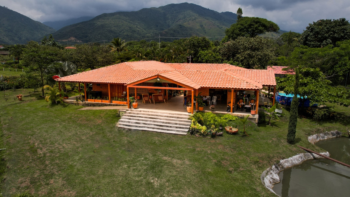 Помешкання розташоване всього в 7 хвилинах від Калі, без плати за проїзд, ідеально підходить для сімей, друзів або особливих подій. Вміщує 20 осіб, 6 спальних кімнат, 3 кабіни, додаткове ліжко, 6 додаткових ліжок, 5 ванних кімнат, простора вітальня та кухня, їдальня на 10 місць, Wi-Fi та чудове освітлення. Зовнішня зона з басейном, синтетичним кортом, дитячими іграми, кухнею для барбекю, звукоізольованою вітальнею, гамаком, великою парковкою та доступом до річки та озера в безпечному районі, оточеному природою.