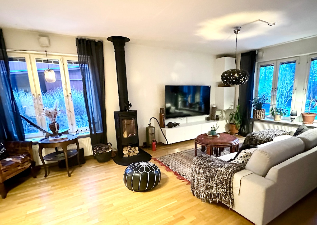 Створіть нові спогади в цьому унікальному та сімейному помешканні. Дуже гарне житло, створене для спілкування, задоволення та благополуччя. Спокійно, але водночас у центрі, на машині лише 20 хвилин до аеропорту Арланда та 30 хвилин до Стокгольма. Великий, відокремлений сад з багатьма різними зонами для всіх видів діяльності, почуттів та вікових груп. 10 хвилин до поїзда/автобуса, який за 40 хвилин доставить вас до Стокгольма. Місце має коріння з вікінгів, рунічні камені та пішохідні стежки за дверима. Тут, у Валлентуні, виросла група Abba.