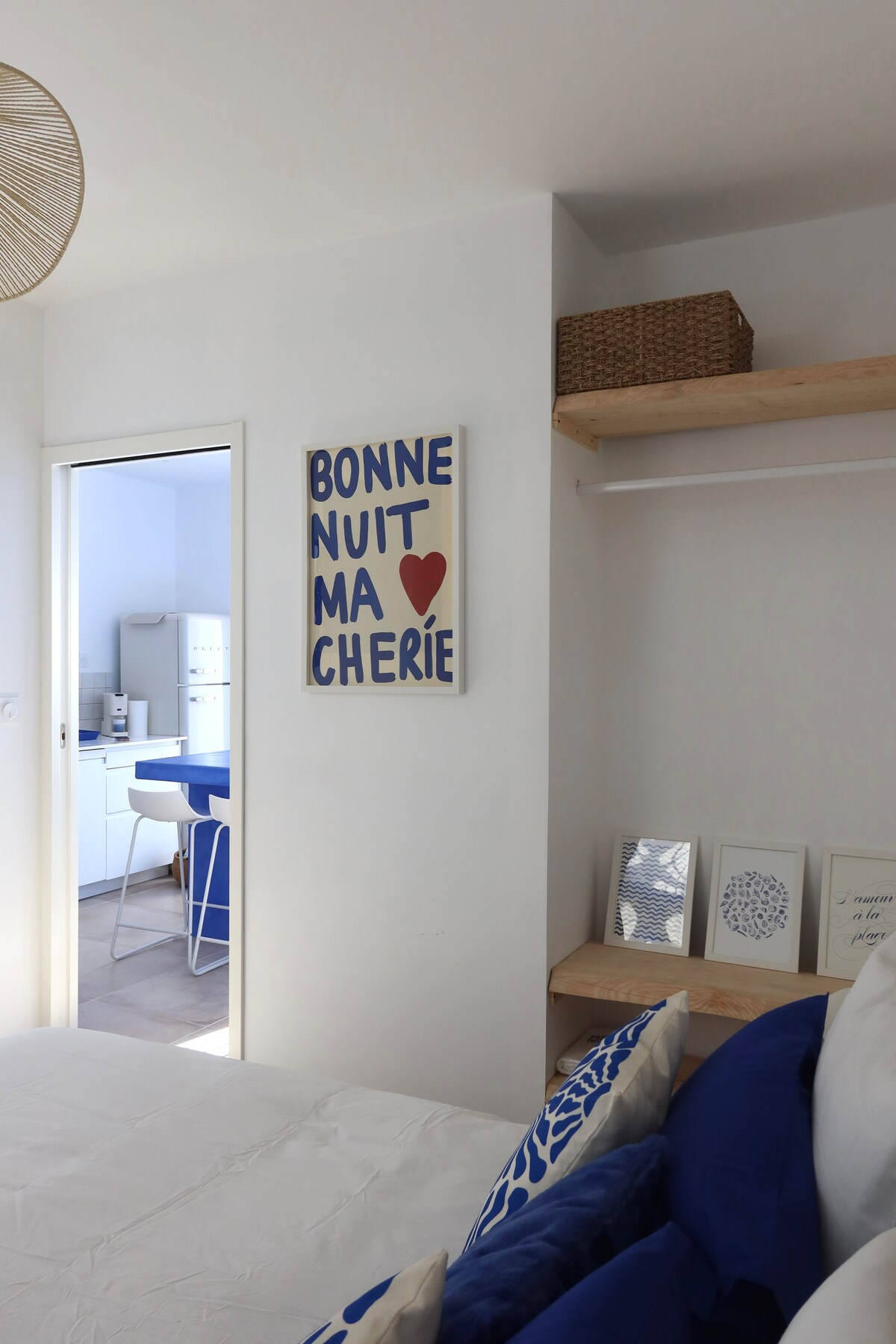 Винятковий і безперешкодний вид на море з балкона, вітальні та спальні. Ідеальне розташування: 15 метрів від пляжів і 3 хвилини ходьби від центру міста. Кутова квартира, другий і верхній поверх (без ліфта), повністю відремонтована. Оптоволоконний Wi-Fi, підключений телевізор (280 каналів, доступ до Netflix за підпискою, безкоштовні фільми та серіали на OQEE) якісне спальне місце (140 ліжок у спальні). Пральна машина. Приватний паркінг, захищений воротами. Додаткова постільна білизна та рушники (25 €)