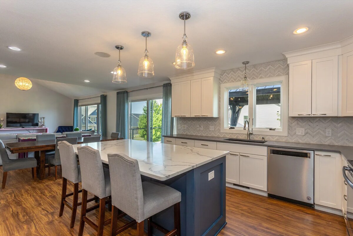 Ваша сім 'я буде поруч із усім, коли ви зупинитеся в цьому помешканні, розташованому в центрі міста в Західному Де-Мойн, недалеко від I-35. Велосипедна доріжка, що веде до парків і місцевих підприємств, проходить через задній двір. Зручна меблі та просторі кімнати ідеально підходить для зустрічей з друзями та родичами. У декількох хвилинах ходьби від West Glen Town Center або Jordan Creek Mall! Під час перебування ви матимете доступ до 4 спалень і 4 ванних кімнат, повністю обладнаної кухні, просторої вітальні та великої тераси з грилем.