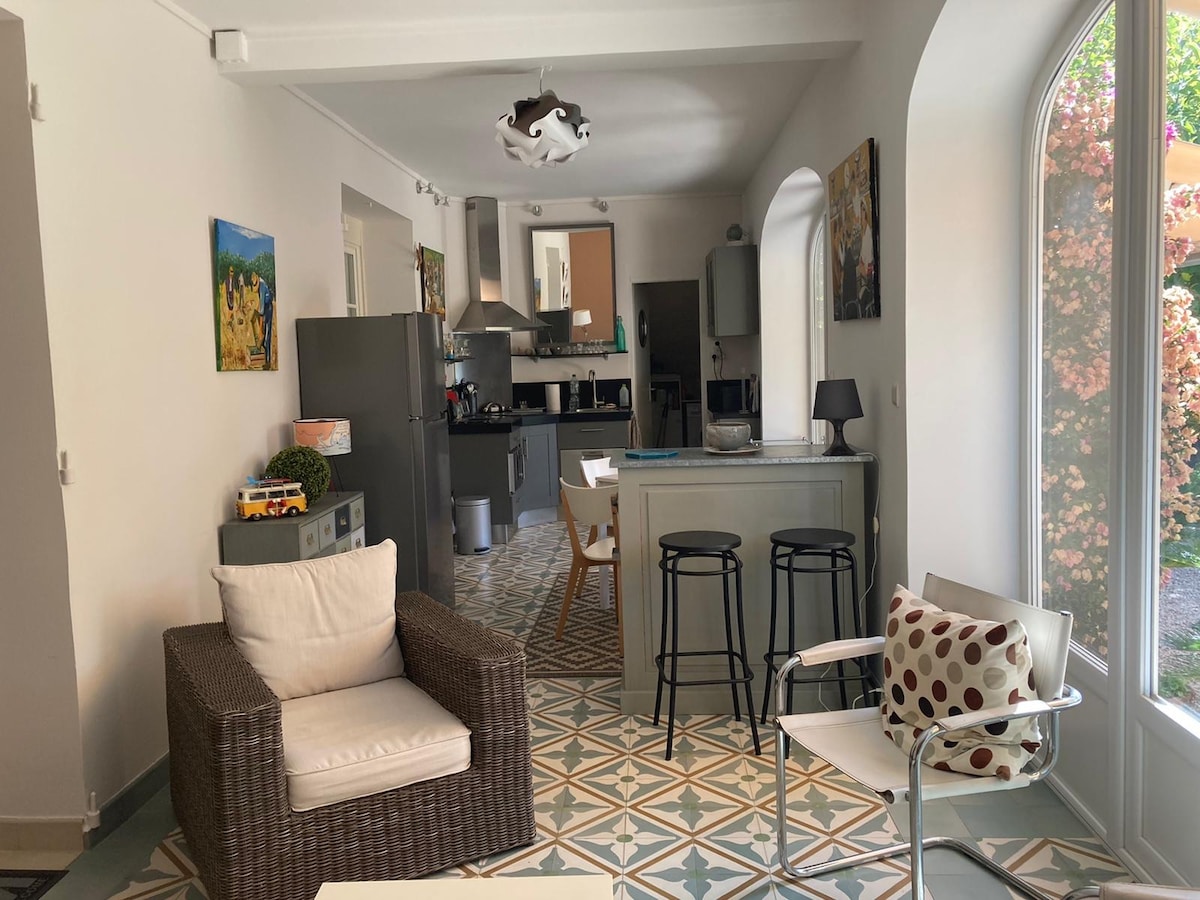 Особиста квартира для господаря, 50 м2 повністю обладнана, іноді доступна, на садовому поверсі вілли з характером. Сад попереду ліворуч у вашому розпорядженні. У тихому тупику, розташованому в 5 хвилинах ходьби від магазинів, 500 м до пляжу Боннегрейс, 15 хвилин до порту Санарі. Можливість перебування без використання свого автомобіля, екскурсії з гавані Санари. Wi-Fi телевізор кондиціонер