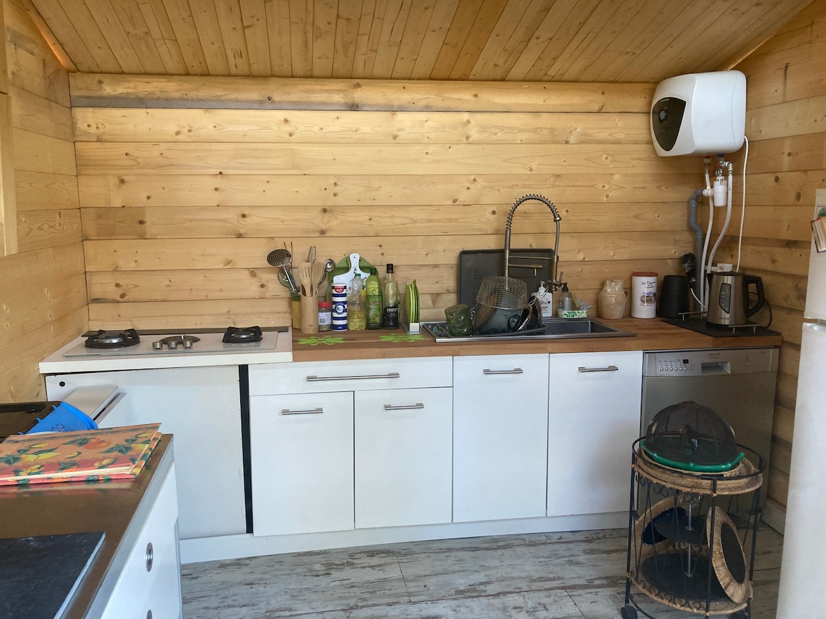 Ця студія площею 30 кв. м, розташована в лісовому масиві, була побудована як прибудова до будинку. Тут є приватний сад і місце для паркування. Тихий, заспокійливий і екологічно відповідальний, цей кокон запрошує вас відпочити. У 5 хвилинах їзди від пляжів, масиву Естерель та центру міста, ви також можете взяти наші велосипеди та дістатися до моря велосипедними доріжками.