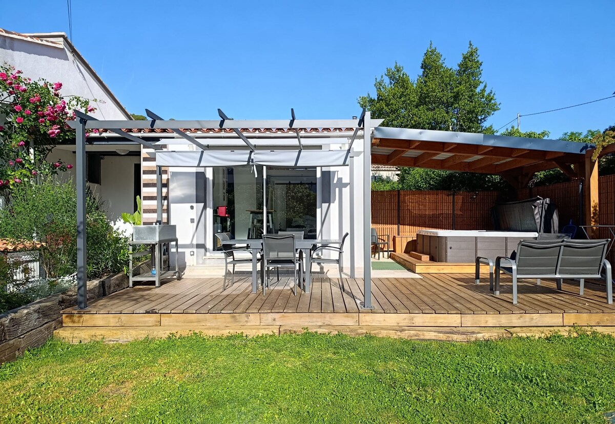 Ласкаво просимо до нашої студії площею 30 м², повністю відремонтованої в 2024 році, розташованої на Presqu'île de Giens, на першому поверсі з терасою площею 16 м ² Ви будете перебувати в безпечному огородженому помешканні з приватним паркувальним місцем. Ви матимете доступ до пляжу за 200 м пішки приватною доріжкою 300 метрів праворуч, коли виходите з помешкання, знаходиться «Marché bergerie» з пекарнею, фруктами та овочами в режимі, торговцем рибою, регіональними продуктами та терасою з видом на старий Сален-д 'Йєр🦩