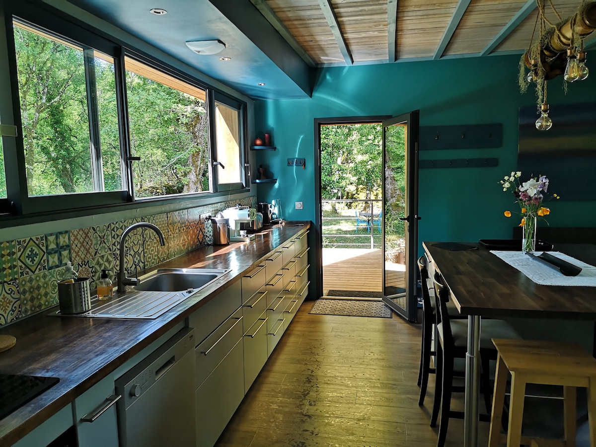 Розташований посеред лісу Cause du Quercy, заміський будинок зеленої лагуни пропонує вам момент спокою та відпочинку в комфортному просторі. Північна ванна, петанк, домашній кінотеатр у програмі! Котедж, побудований у 2021 році, з великою критою терасою, відкритою для природи. Він складається з двох спалень з двоспальними ліжками, вітальні площею 40 м², ванної кімнати з ванною та сухим туалетом. Місце, яке ідеально підходить для ночівлі або кількох ночей.
