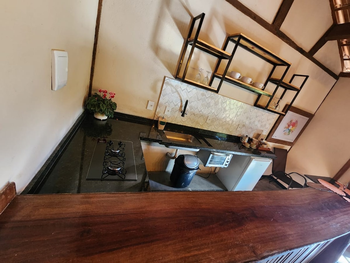 Шале має 35 м², побудоване на землі 71 000 м², і більша його частина є атлантичним лісом. Вона має спальню, ванну кімнату, кухню, вітальню та балкон. Один висувний диван-кровать Queen і двомісний матрац з пінопластом на 4 людини. Володіє лісистим садом і озером з рибою, дозволяється рибалити. Середовище дає чудову можливість з 'єднатися з природою. Розташований біля модних пивоварних заводів гір Капіксабас. Прибуття з 17: 00 до 21: 00 Оформлення замовлення 14 год. У нас є інтернет через волоконну оптику
