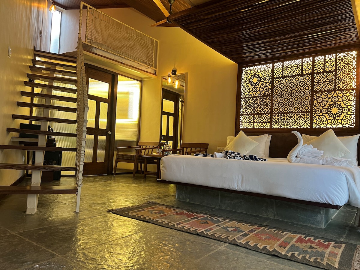 Welcome to Avhyay Resort, where blissful tranquility meets modern luxury. Nestled amidst lush greenery, the Suite Casa Foresta invites you to experience a harmonious blend of nature and opulence. Step into a spacious haven adorned with tasteful decor, offering a serene ambience for relaxation. The suite boasts a comfortable king-size bed, ensuring a restful sleep. The private balcony offers breathtaking views of the surrounding forest, allowing you to connect with nature in utmost privacy.