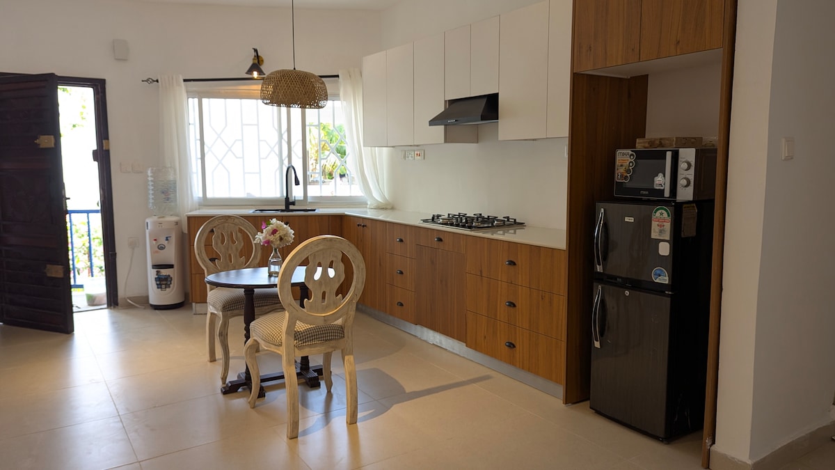 This one bedroom flat is perfect for couples and solo travellers, peaceful enough for remote work. The flat is in the quieter side of Malindi, less than a minute walk from the beach with a private compound entrance. You can also enjoy the pool. Restaurants are within walking distance via the beach (e.g. 5min to Coco Beach, 2min to Mariposa). Supermarket and ATMs are about 10 minutes away by Boda Boda or Tuktuk. The airport is a 12min drive. Our housekeeper is available at no extra charge.