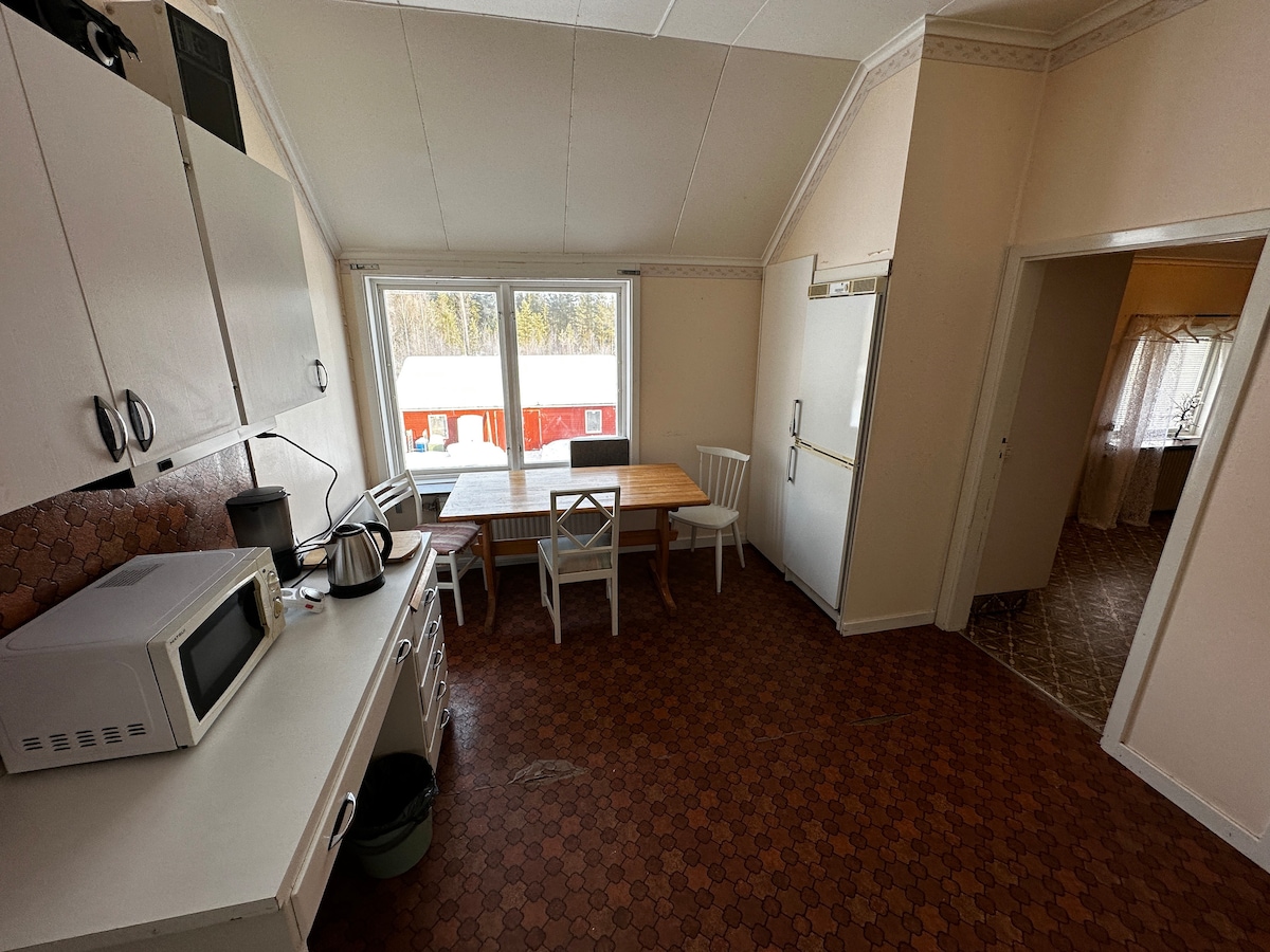 Комфортна квартира в спокійному районі поблизу Люнгаверка. У кожній з двох спалень є односпальне ліжко. У вітальні є камін і вихід на окремий балкон. У ванній кімнаті є ванна, а гості можуть користуватися спільною пральнею. До невеликого магазину можна дістатися за допомогою шведського BankID, а місто знаходиться всього в 10 хвилинах їзди.