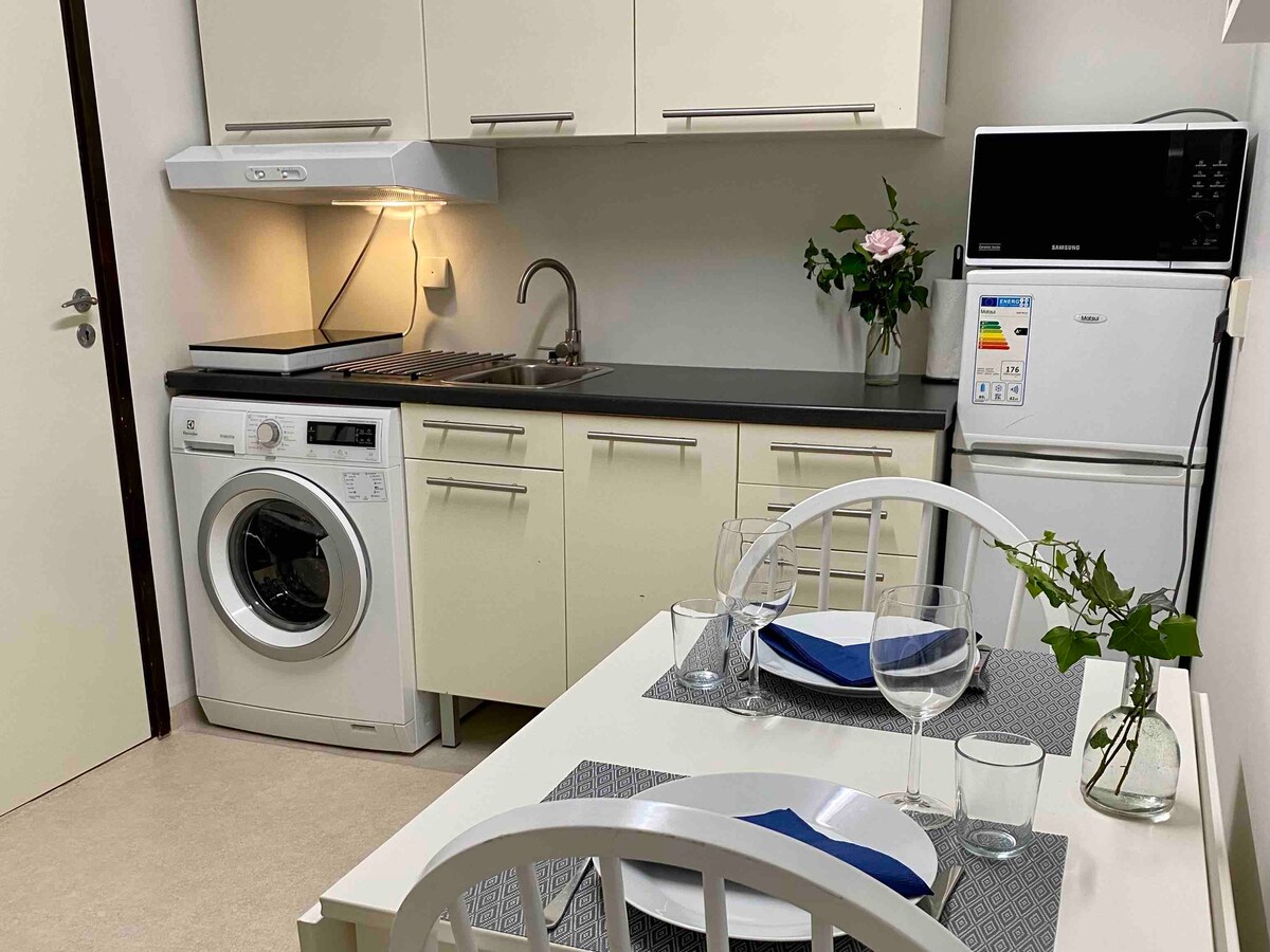 Квартира з однією спальнею (35 кв. м) на віллі, з окремим входом. Кухня з плитою, духовкою, мікрохвильовою піччю, холодильником і морозильною камерою. Двоспальне ліжко (160 см) та диван-ліжко підходить для 2 дітей або маленьких дорослих. Ванна кімната з душем, туалетом та пральною машиною. - Озеро поблизу - Дитячий майданчик та футбольне поле в цьому районі - Відстань на велосипеді до океану. - 5 хвилин пішки до найближчої автобусної зупинки.