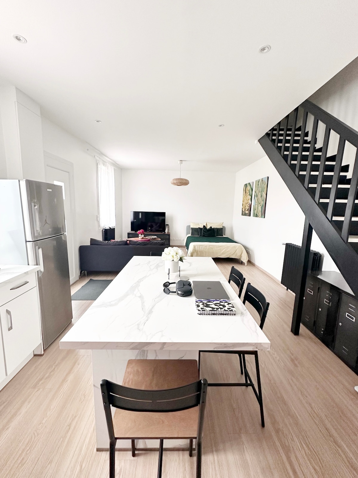 Затишна та сучасна квартира у Вільпарісі, ідеально підходить для пари з дитиною. Спальня з двоспальним ліжком 160 см, розкладний шезлонг, обладнана кухня та сучасна ванна кімната. 15 хвилин від аеропорту Шарля де Голля, 30 хвилин від Діснейленду в Парижі або парку Астерікс, а також Стадіон Франції, з швидким доступом до Парижа від залізничного вокзалу. Ідеально підходить для романтичного або сімейного відпочинку, поєднуючи комфорт і зручне розташування.