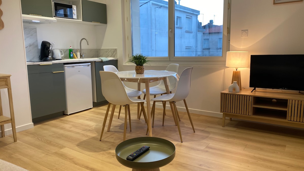 Ласкаво просимо до нашого чарівного помешкання в Морнак-сюр-Сюдрі,«найкрасивішого селища у Франції в країні Роянна». Старий будинок і повністю відремонтований. Щоб провести відпустку в Шаранті, в 10 хвилинах їзди на автомобілі від Кот-де-Боуте. Ви можете зупинитися в одній з 3 спалень, включаючи один відкритий антресоль, і насолодитися сонячним приватним подвір 'ям. У помешканні є вітальня, обладнана кухня, їдальня, а також окрема ванна кімната та туалет. До зустрічі! Крістін і Деніс