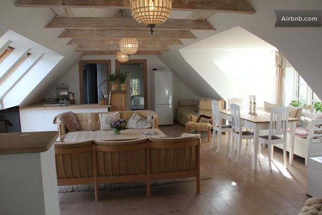 Нещодавно облаштована велике приміщення в окремому будинку на фермі. Власний вхід. Житло складається з вітальні/кухні, спальні та ванної кімнати. Загалом 30 м2. Все з легких і приємних матеріалів. Є холодильник, духовка/мікрохвильова піч та індукційна плита. Житло обладнане всім необхідним кухонним посудом, склянками та столовими приборами. Є можливість позичити Chromecast.