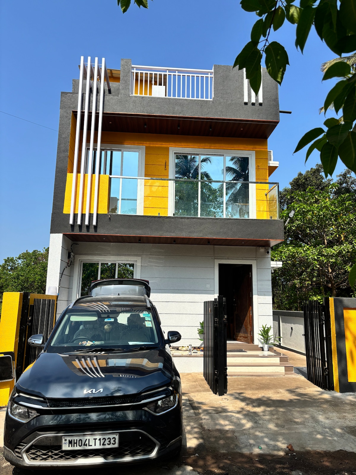 * Families preferred. No smoking or drinking. * Escape to our cozy, pet-friendly homestay in Shrivardhan, just a few minutes from the beach. The space is most comfortable for 4 guests due to a single bathroom, but we can accommodate up to 5 adults. Enjoy air-conditioning, inverter backup, TV and Wi-Fi for a comfortable and convenient stay. While we don’t offer food or silverware, our neighbours prepare tasty Konkani vegetarian and non-veg meals, which will be served in our backyard.