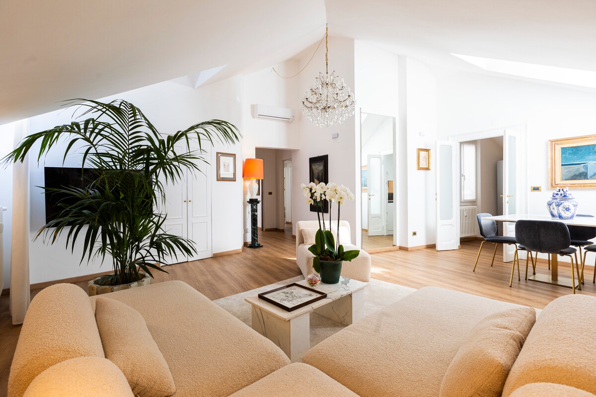 Escape to a private, sun-drenched penthouse in the heart of Milan. This unique, top-floor attic in a historic building offers a quiet retreat for two in the heart of the city. It features a fully equipped kitchen, a dedicated table/workspace, a modern home theatre system with Sonos audio, and two Daikin A/C units. Located just a 2-minute walk from Cadorna station, with the Duomo and Sforza Castle nearby. Enjoy seamless self-check-in for a perfectly independent city getaway.