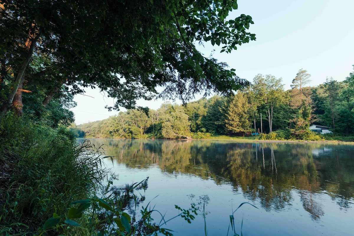 Насолоджуйтеся цим затишним сільським зрубом із двома спальнями площею понад акр на березі Френч-Крік. Проведіть день на риболовлі та каякінгу (візьміть із собою або позичити нашу), а також вечір біля багаття або дров 'яної печі. Відпочиньте на критому ганку - укомплектований зручним кушеткою. Зруб повністю відремонтований з еклектичним, художнім штрихом. Більшість творів мистецтва також можна придбати. Близькість до гольфу, полювання, пішохідного туризму, диск-гольфу та пивоварень. Також вітаються домашні тварини з гарною поведінкою.