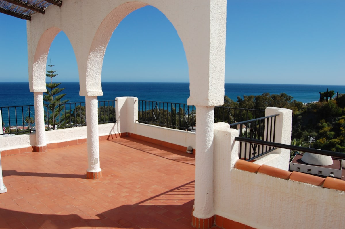 The perfect place to relax and enjoy. The apartment is located on top of a hill and a 5-10 min walk from te beach and the boulevard with all restaurants and bars. The air bnb has a huge terrace (70m2) with a roofed dining area, lounge and a barbecue. The views are spectacular. You will live between the mountains with a fantastic pool- and seaview. Inside we have all equipment and service you need. Mojácar and it's surroundings has a lot to offer.