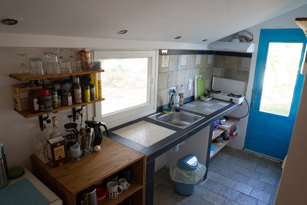 Квартира розташована в історичному місті Вергіна-Аїгес, всього в 200 м від Царських гробниць і в 14 км від Верії. Складається з 2 спалень, одна з яких має власну ванну кімнату, 1 ще більшої ванної кімнати, 1 вітальні, на дивані якої може зручно спати одна людина, та повністю обладнаної кухні. Для наших маленьких гостей також є дитяче ліжечко. Крім того, є пральна машина, фен і випрямляч для волосся.