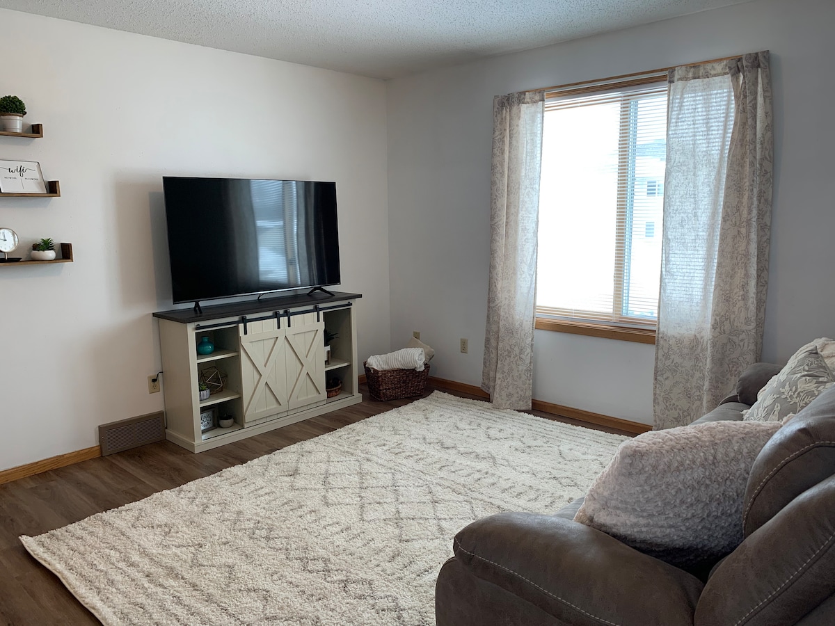 Відпочиньте з усією сім 'єю та друзями, насолоджуючись чудовим містом Вермільйон під час перебування в цьому комфортному та просторому дуплексі. Зручне розташування поруч із кампусом, ресторанами та магазинами USD. Прогуляйтеся і насолоджуйтеся заходом у доларах США. Або відведіть сім 'ю до парку. Близько розташований до парку Прентіс, де ви можете охолодити басейн, пограти на ігровому майданчику або баскетбольних майданчиках і насолодитися чудовими місцями для пікніків. Це помешкання обов 'язково підійде для веселого перебування під час вашого візиту.