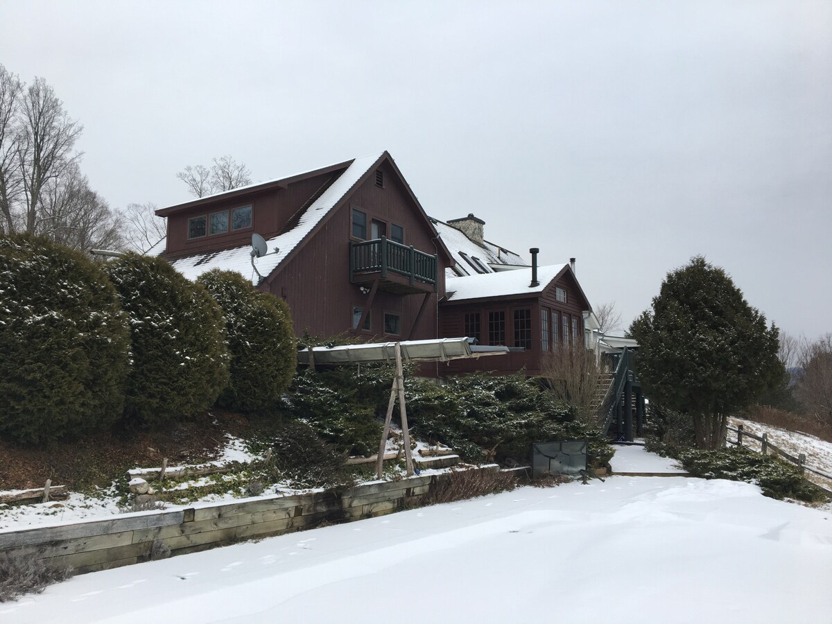 Приватний A-Frame в Альпійському селищі, Уоррен, Вермонт. 10 хвилин до курорту Sugarbush Resort, 20 хвилин до Mad River Glen. За милю від красивого Чорничного озера і неподалік знаходиться Уоррен. Повноцінна спальня та спальний лофт на верхньому поверсі з 2 односпальними ліжками. Дуже спокійна і тиха ґрунтова дорога з частковим видом на схід у бік хребта Роксбері. Повний привід вимагається з листопада по квітень із пристойними шинами, автомобілі з низьким кліренсом не рекомендуються. Будь-які запитання або запити, будь ласка, звертайтеся!