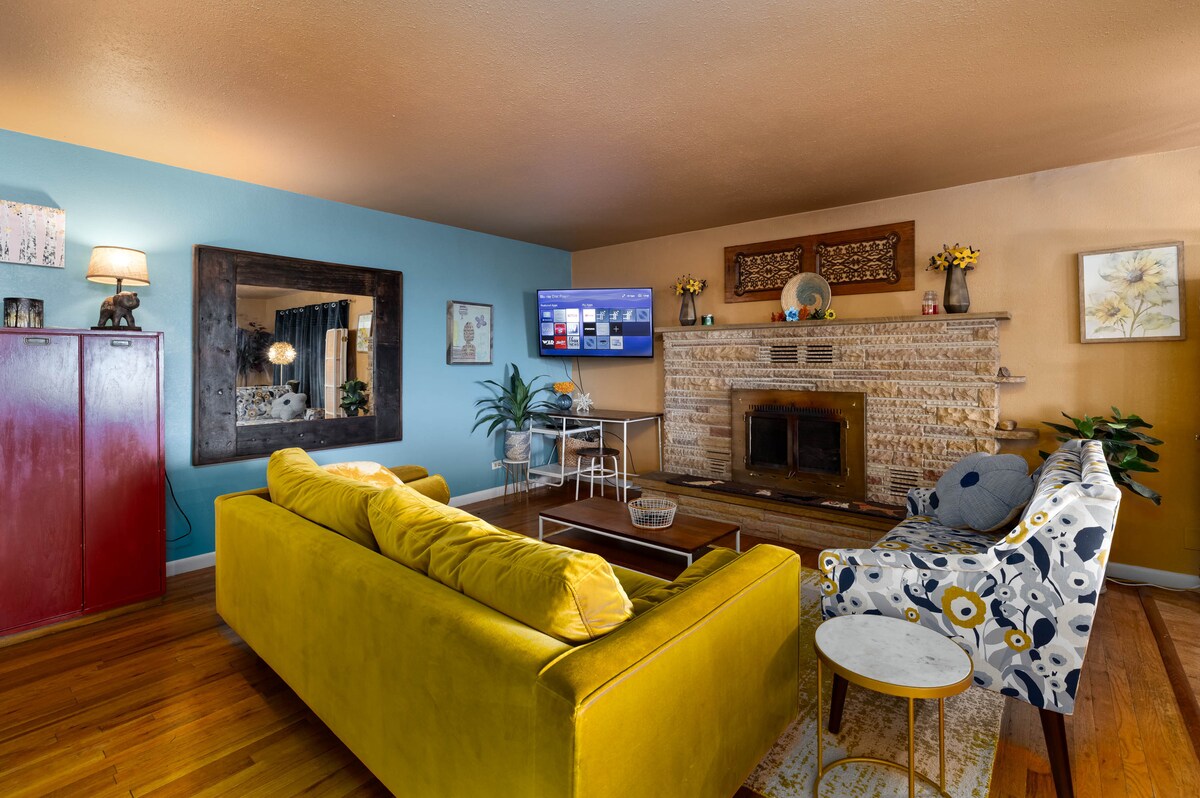НЕЩОДАВНО відремонтоване помешкання в стилі РЕТРО. Один поверх! Це веселі предмети/меблі 60-х і 70-х років з усіма сучасними зручностями та зручностями! 4 ліжка | 2 ванни | 1 квартал на південь від Вернальського храму! 3 спальні мають ліжка розміру KING SIZE з тумбочками з кожного боку ліжка. У кожній кімнаті є вентилятор/світло, зовнішнє живлення в тумбах зі Smart TV. Четверта кімната, кімната з ДВОМА ЯРУСАМИ, включає 2 ліжка Cal KING з 2 повнорозмірними ліжками зверху. Кожне ліжко має власне освітлення та електричні розетки! Додаткова кімната для відпочинку в цій кімнаті з ігровою консоллю!