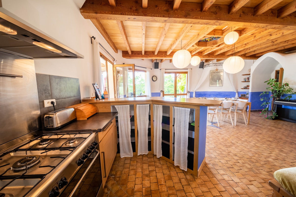 Відкрийте для себе ідеальний простір для відпочинку з приватним басейном, пишним садом і дерев’яною терасою. Це сучасне та просторе помешкання ідеально підходить для сімей або друзів, які хочуть відпочити, і має всі необхідні зручності для комфортного перебування. Насолоджуйтеся теплою атмосферою та сучасним декором, а також численними зручностями для безтурботного відпочинку.