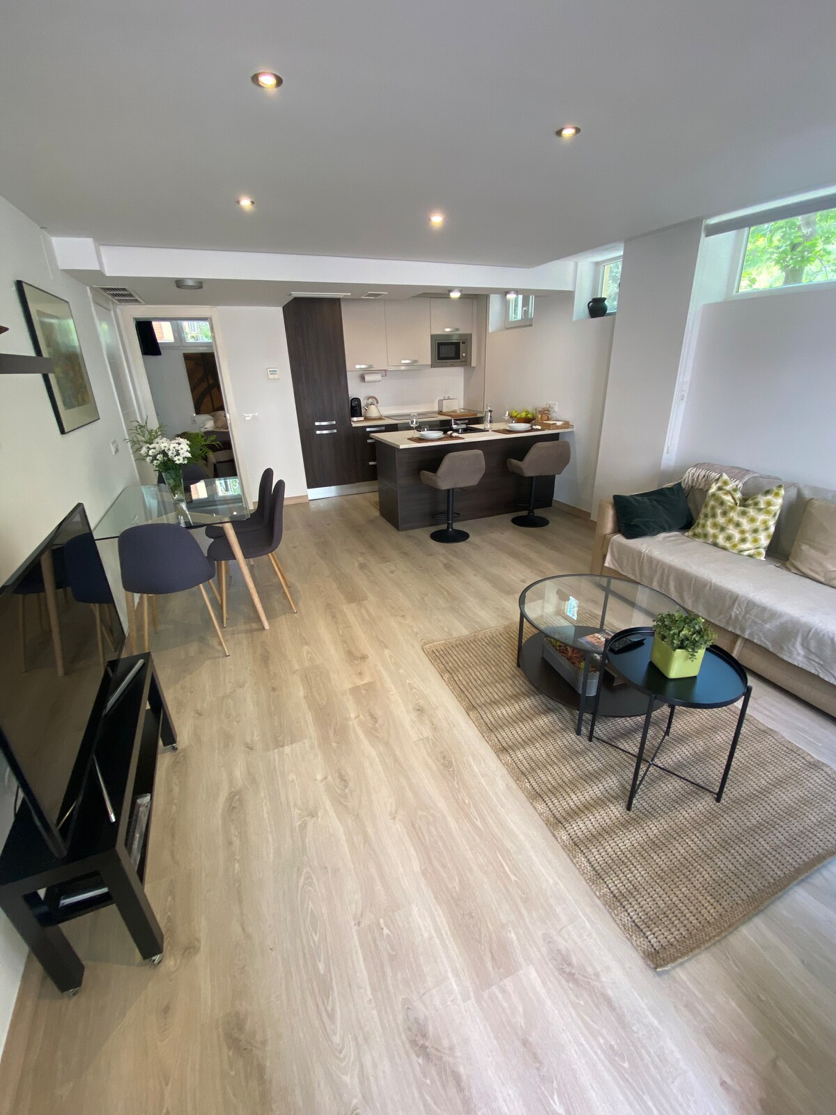 Квартира «Vine» розташована в центрі Мадрида, недалеко від Гран-Віа, на тихій вулиці в новій будівлі з ліфтом. Вона натхнена природою, яскрава та сучасна, має Wi-Fi, повністю обладнана і знаходиться дуже близько до ресторанів, тапас, метро, магазинів та галерей. Найкраще підходить для однієї людини, пар або пар з дитиною! Проживання з домашніми тваринами з радістю!!! Квартира розташована в новому будинку, з ліфтом! Це сучасний дизайн, з багатьма зеленими, нагадує його назву «Вайн». З величезного вікна по всій території всієї квартири відкривається вид на красивий приватний сад. Квартира складається з спальні з двоспальним ліжком, вітальні з односпальним розкладним диваном, кухні та ванної кімнати. Вона має Wi-Fi і повністю обладнана, включаючи пральну машину, телевізор, кондиціонер та кавоварку Nespresso - усе це просто готово для вашого комфорту та задоволення! Квартира - це квартира-студія з відкритим простором - і це все ваше, щоб насолоджуватися! У квартирі немає зон, якими ви не можете користуватися або отримати доступ! Ми любимо приймати гостей, але також поважаємо приватність наших гостей! Ми завжди готові допомогти! Розташоване безпосередньо біля Гран-Віа в жвавому районі Маласана з великим діапазоном автентичних кафе, тапас та барів. Величезна Zara Primark & Mango знаходиться в декількох хвилинах ходьби. Найкращі місця Мадрида, такі як Королівський палац, Пуерта-дель-Соль та музеї, знаходяться в декількох хвилинах ходьби Центральна станція метро Gran Via знаходиться в 2 хвилинах ходьби від квартири. Звідти можна доїхати на метро до будь-якого місця Мадрида, а також до всіх залізничних станцій, які доставлять вас з Мадрида до решти Іспанії. Якщо ви приїжджаєте на автомобілі, за адресою Barco 1, Мадрид, всього за хвилину від квартири знаходиться велика парковка. Поруч також є станція для прокату велосипедів. Набір води, соди, молока, кави, чаю та солодощів чекатимуть на вас :-)