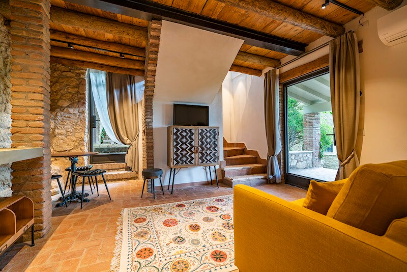 Charming double room of 23 sqm, beautifully restored in a 15th-century barn, with a private bathroom and all modern comforts: air conditioning, fiber Wi-Fi, pay TV, and luxury toiletries. Surrounded by the lush greenery of our organic vineyards, it offers a relaxing and intimate atmosphere. Exclusive access to the pool and private parking, plus a stylish lounge for moments of pure relaxation.