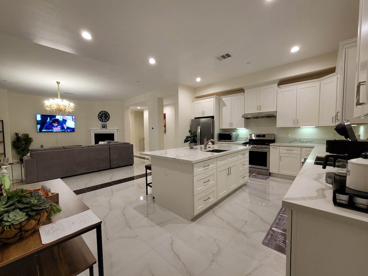 Ласкаво просимо до Великого штату Каліфорнія! Це красивий просторий будинок у передмісті Лос-Анджелеса. Ваш Airbnb - це помешкання площею 2400 квадратних метрів, повністю призначене для відпочинку та відпочинку! Нещодавно відремонтовані, 6 телевізорів, Wi-Fi включено та самостійне прибуття! Насолоджуйтеся цілорічною вишуканою погодою та сонячним сяйвом зі зручностями та зручностями, щоб ви почувалися як удома. З власним балконом у головній спальні. Чудове місце для сімейних зустрічей, тимбилдингу тощо!