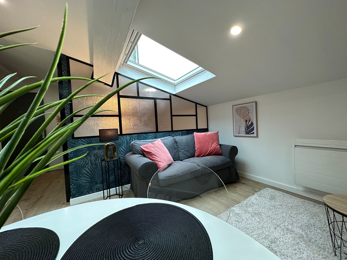 ★ Les Greniers du Temple ★ Відкрийте для себе Відень, як ніколи раніше, у цій великій затишній квартирі T2 в центрі старого Відня. На 4-му поверсі без ліфта, чарівність його скляного даху та великих вікон під дахами вітає вас в атмосфері кокону, де 2 двомісні спальні, в тому числі одна відкрита для вітальні клаустрою, пропонують вам всі зручності, щоб провести ідеальне перебування для сім’ї, з дітьми та без телевізора! Він чекає лише на вас!