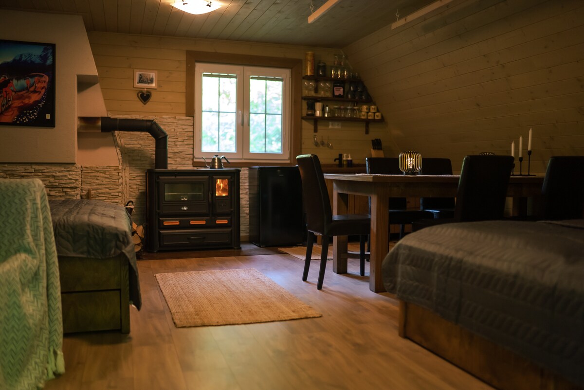Якщо ви хочете втекти від повсякденної суєти та стресу, приїжджайте до нашого будиночка в самому серці природи в мальовничому містечку Вигні. У нас ви зможете насолодитися прекрасним видом на навколишні пагорби Штявниці, кам’яне море, романтичними моментами на терасі для двох або відпочинком у нашій ванні. Влітку можна прогулятися лісовими стежками, подихати свіжим повітрям і відчути запах природи. Взимку можна погрітися біля каміна і подивитися улюблений фільм на Netflix.