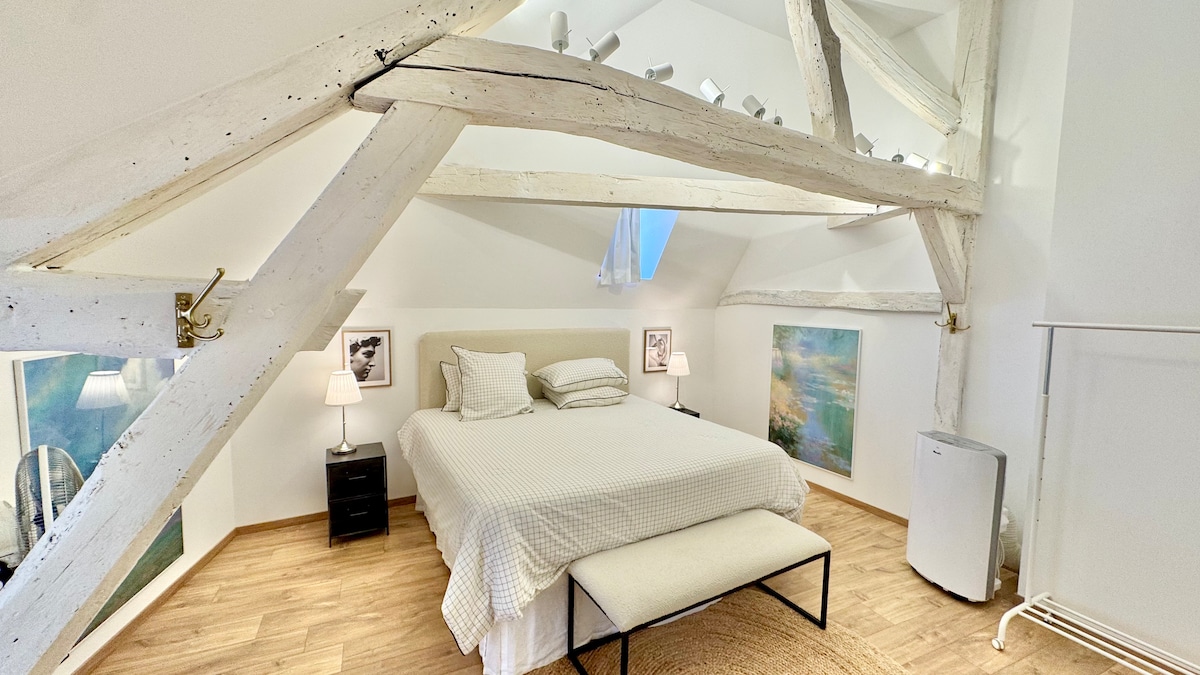 Цей лофт з кондиціонером унікальний, він розташований в центрі історичного центру, а в нижній частині двору в безпосередній близькості від хоспісів. Звідси відкривається дивовижний вид на площу Карно і навіть дзвіницю хоспісів. Ми повністю відремонтували та прикрасили якісними благородними матеріалами. Вражаюча соборна стеля висотою 6 м, дуже яскрава. Безкоштовна парковка поблизу, ресторани та магазини на площі. Повністю обладнане та прибуття 24/7