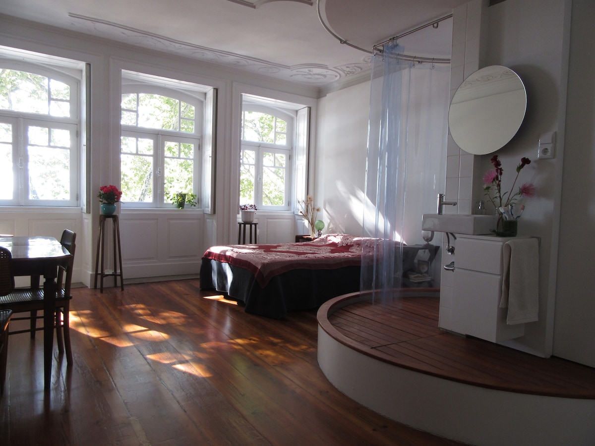 Романтичний люкс на двох осіб із 2 ПРИВАТНИМИ ТЕРАСАМИ з ДИВОВИЖНИМ видом на Порту, річку Дору та міст Дом-Луїс. Квартира розташована всього в 2 хвилинах ходьби від всесвітньо відомих портових винних погребів. Міст Дом-Луїса - це помешкання з найкращими барами та ресторанами на набережній неподалік. Повністю обладнана кухня, ванна кімната з душем та зручне двоспальне ліжко з м 'якою постільною білизною - це ідеальне місце для відпочинку після відвідування Порту! Ласкаво просимо в Gorans Guesthouse!