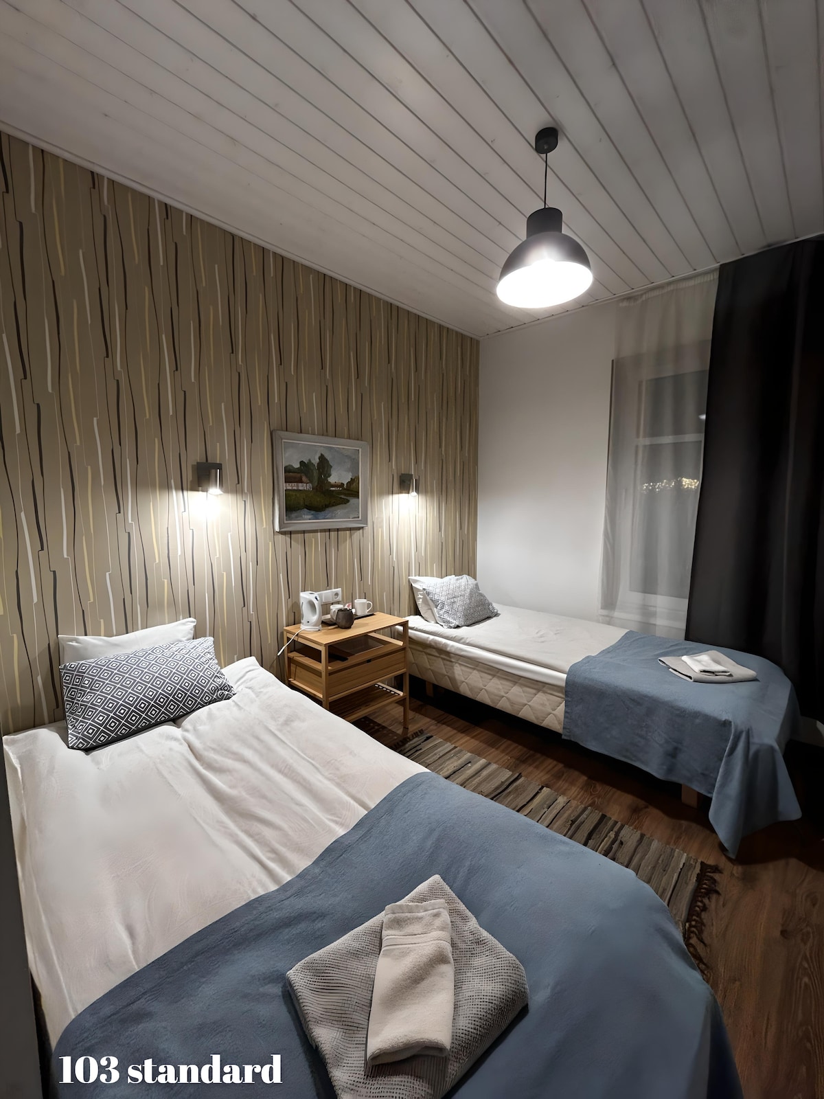 За тварину стягується збір у розмірі 5 € на день Carl Schmidt House Standard 2 Room (18 кв. м) – ідеальний вибір для комфортного проживання У кімнаті є 2 односпальні ліжка, ламінатна паркетна підлога, безкоштовний Wi-Fi, радіатор, чайник, фен, шафа для одягу, рушники, постільна білизна та телевізор. У кімнаті є електричні розетки біля ліжка та окремий душ/туалет Кімната розташована в центрі Пылтсамаа, забезпечуючи чудове розташування як для перебування, так і для відпочинку та ознайомлення з містом. * Лише сходи для доступу до верхніх поверхів