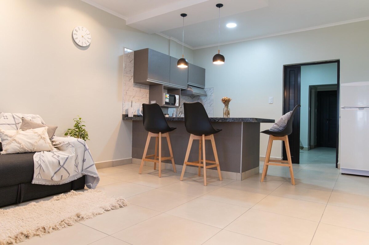 Departamento San Cayetano ,це моно-кімната з двоспальним ліжком , диваном із трьома тілами, обіднім столом,телевізором ,кухнею та електричною духовкою, повним основним посудом,з постільною білизною замінюється кожні три дні , є Wi-Fi, холодне повітря,він розташований на першому поверсі зі сходами ,дуже просторий і з великою кількістю природного освітлення
