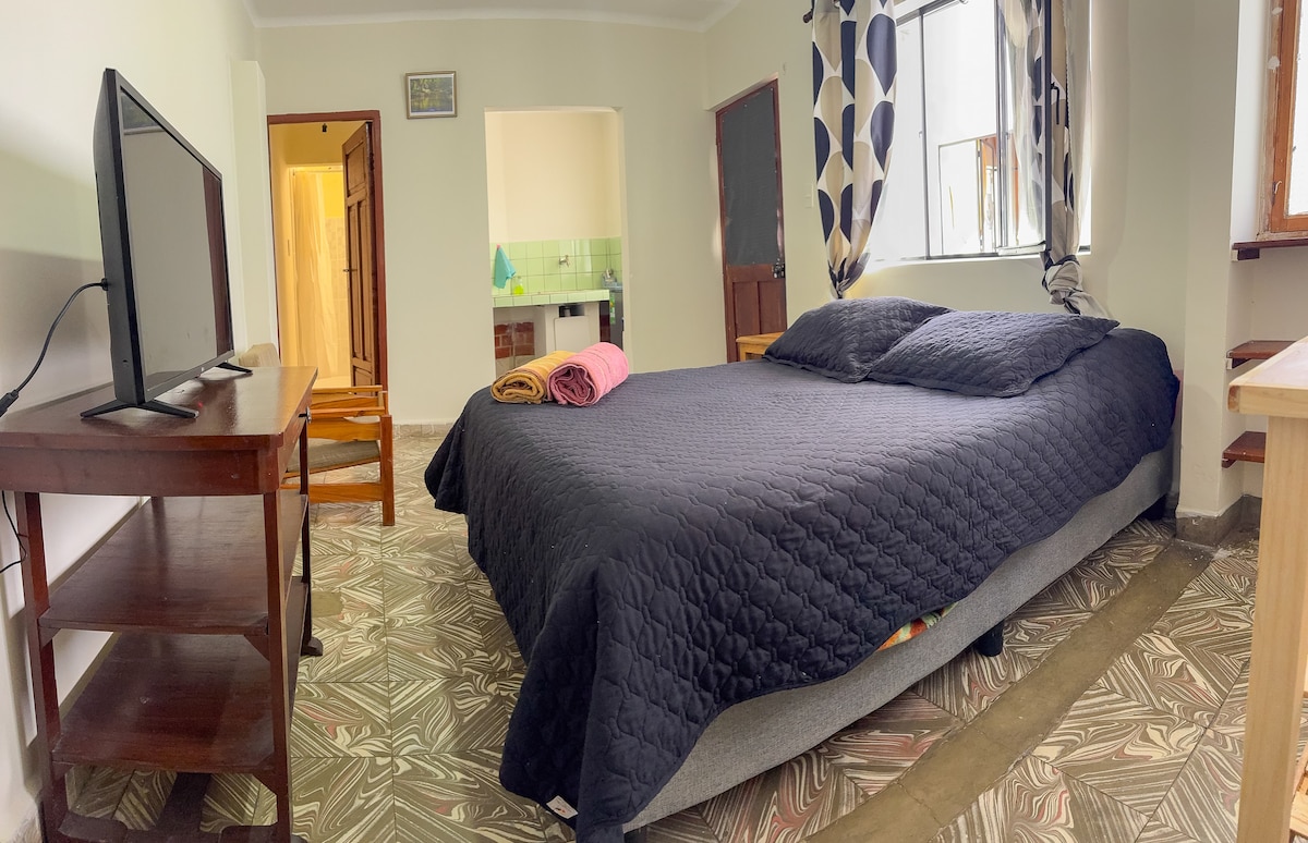 Насолодіться цією комфортною та світлою квартирою, ідеальною для відпочинку під час дослідження Сукре. Вона розташована на першому поверсі, має окремий вхід і знаходиться всього за 4 квартали від головної площі. У ньому є одна спальня, простора вітальня, власна ванна кімната та сад у патіо. Це тихе місце, наповнене природним світлом. Район безпечний і дуже практичний: поруч із супермаркетами, ресторанами та історичним центром.