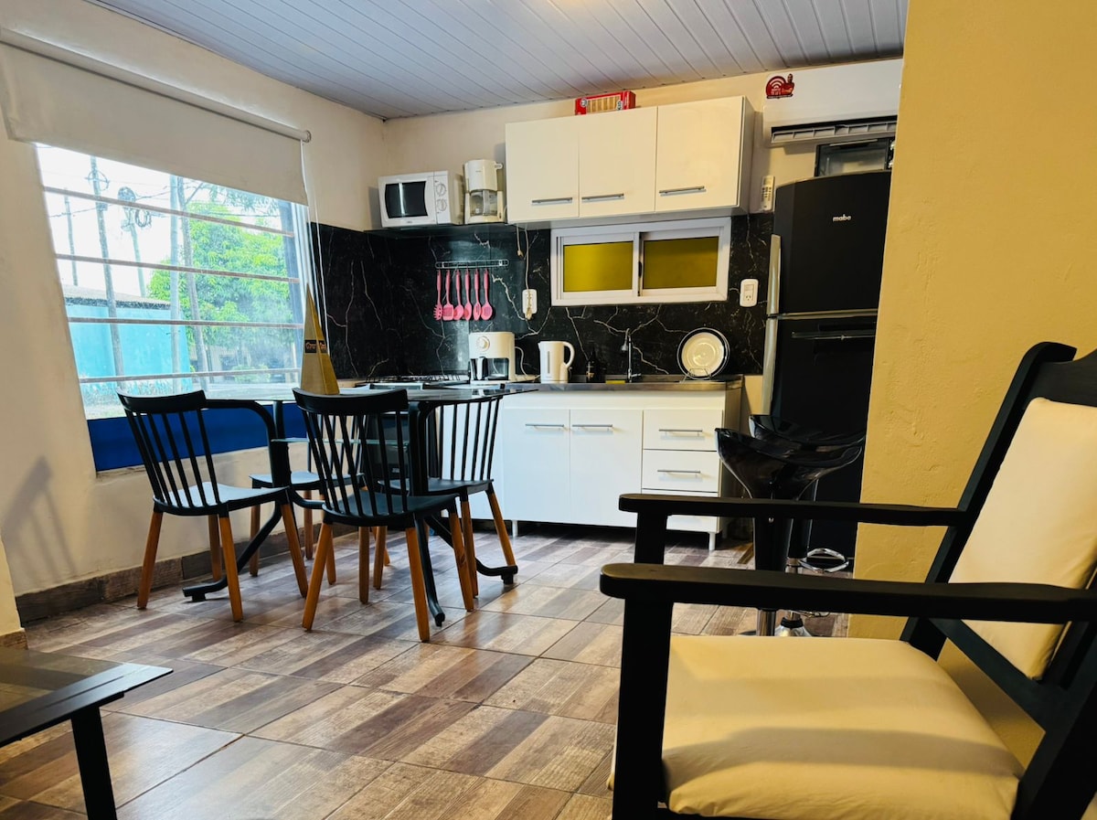 Будинок розташований у центрі Формози. Вона має вітальню, спальню з двоспальним ліжком, ванну кімнату, обладнану кухню та зал для сніданку. Тут також є внутрішній дворик і гараж, а також місце з грилем, щоб ви могли насолоджуватися насиченим барбекю. 7 кварталів від пішохода. 5 кварталів від залізниці - прибережна набережна. 7 кварталів від головного проспекту 25 де Майо. Супермаркети за 2 квартали.