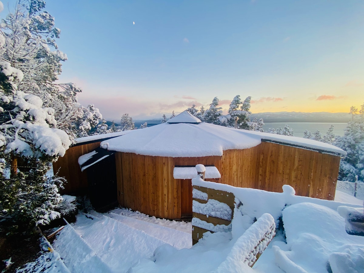 Теплий зруб у сільському стилі на березі озера Науель-Уапі з джакузі, дров 'яним будинком і терасою. Студія створена для відпочинку та романтики з видом на схід і місяць над озером. Смарт-телевізор і ОПТОВОЛОКОННИЙ Інтернет з Wi-Fi для роботи. Кітчінетка з усім необхідним, включаючи кавоварку солодкого смаку. Сейф для захисту ваших ноутбуків під час прогулянки. Повна ванна кімната. Басейн, пінг-понг. Пляж: байдарка та сапсерфінг. Континентальний сніданок.
