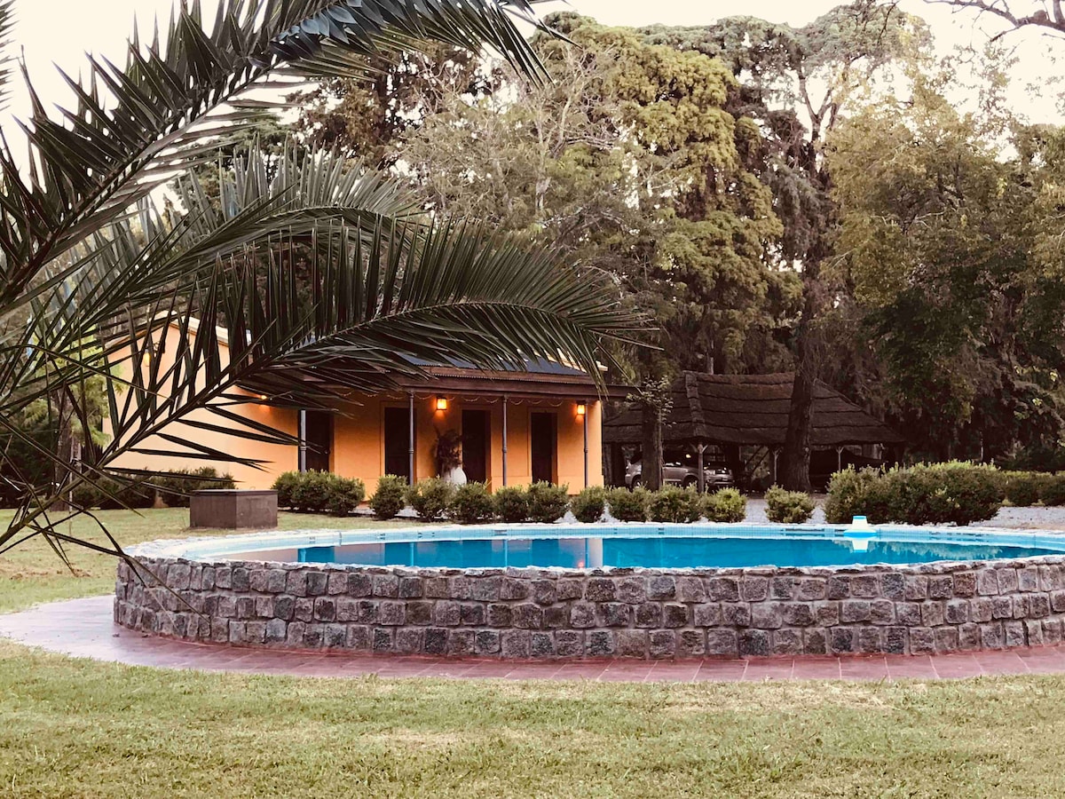 Відпочиньте всією сім 'єю в цьому тихому помешканні, де беруть участь власники. Великі зелені насадження, великі та старі гаї, басейн і місце для зберігання автомобіля, біле обслуговування, сухий сніданок. Місце для відпочинку на природі з пробудженням птахів. Прогуляйтеся, покатайтеся на велосипеді, біля струмка та міста Сан-Ніколас.