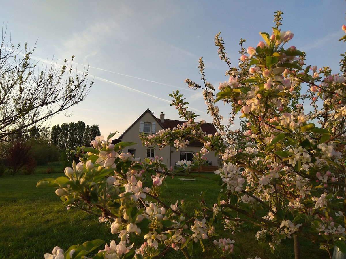 Незалежна відремонтована кімната в приватному будинку в декількох кроках від пляжу Савоньєр. Прямий доступ до маршруту Луари на велосипеді. 2 км від замку Вілландрі та 12 км від Турів. Магазини поблизу: пекарні, ресторани...менше ніж за 5 хвилин ходьби. Житло: окремий вхід із власною душовою кімнатою. Кімната площею приблизно 18 м². Пропонується невелика ранкова закуска. У номері є кавоварка, чайник, мікрохвильова піч і холодильник. Wi-Fi та телевізор.