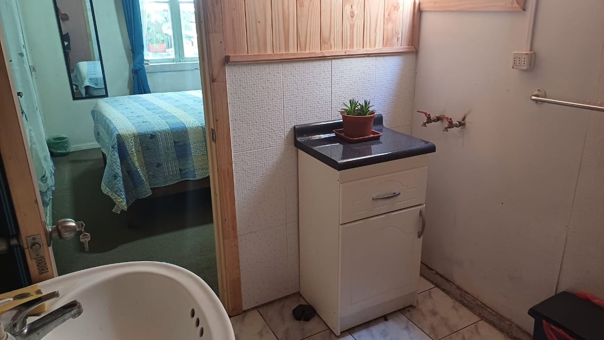 Повністю обладнана кімната для двох у задньому дворику. Кухня, пральна машина, безкоштовна парковка, високошвидкісний Wi-Fi та гриль. помешкання просте, але дуже затишне і тихе. ми знаходимося в Пуконе всього в 5 хвилинах ходьби від самого центру міста і приблизно в 25 хвилинах ходьби locomoción publica біля воріт ( колектив № 3) Uber і деякі сусідні підприємства для покупки базових продуктів харчування