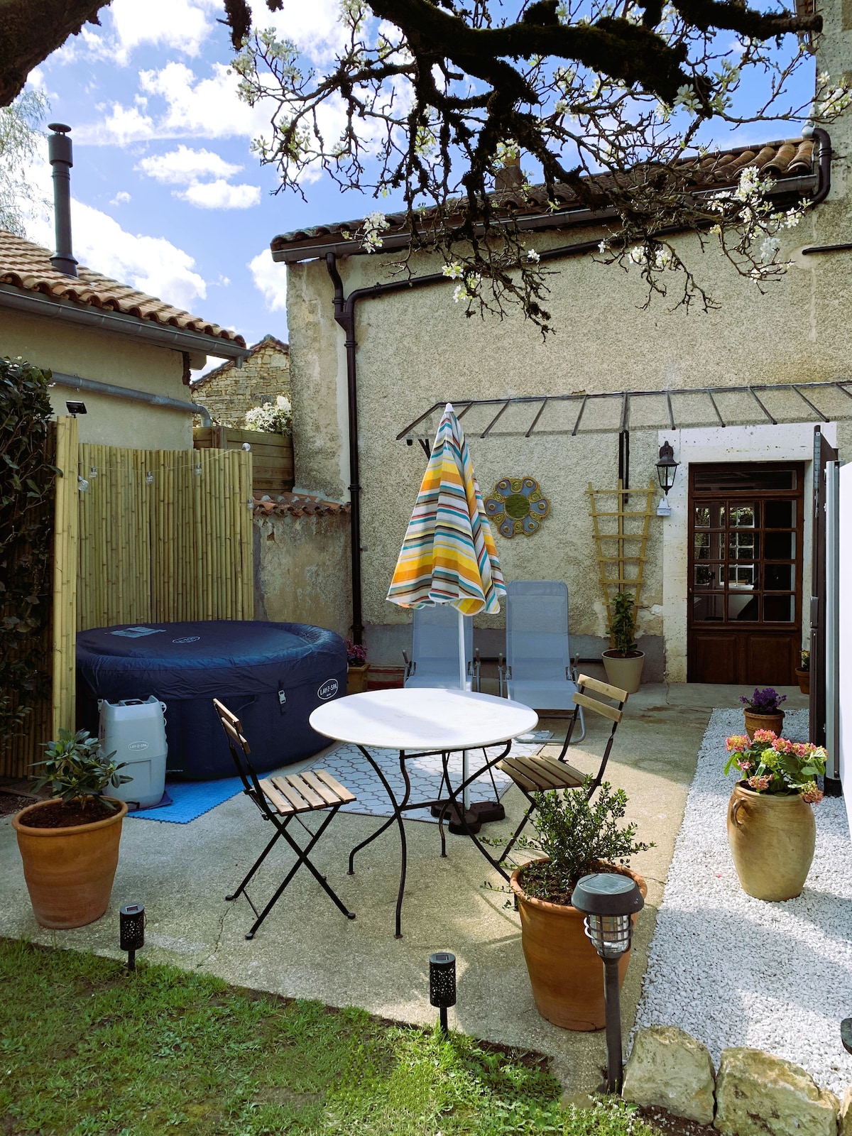 Цей котедж поєднує в собі простий сільський французький шарм із сучасними зручностями та розслабленням: відпочинок - приватне життя та спокій у серці Раю(e). Красиво відреставрований гіт розташований в центрі країни, але знаходиться недалеко від прекрасного історичного села Вертей, одного з найкрасивіших в Шаранті, де переважають чудовий замок з ресторанами, винним погребом і невеликим недільним ринком. Також виїжджайте з Nanteuil- en-Vallee.
