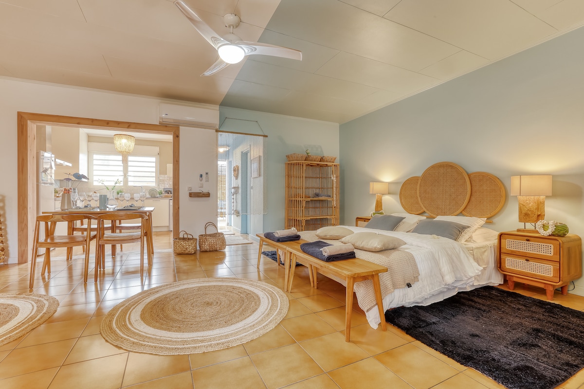 Вілла Serenity – це райський куточок, розташований на західному узбережжі острова. Наша вілла, розташована між морем і горами, пропонує вам відпочинок у спокої та комфорті для незабутнього перебування. Вілла розташована в кількох хвилинах від пляжів (Букан-Кано, Сен-Жиль) і має тихе та безпечне розташування. Насолоджуйтеся приватним басейном, оточеним тропічним садом, і відкритою зоною відпочинку (альтанка, барбекю, настільний футбол, шезлонги).