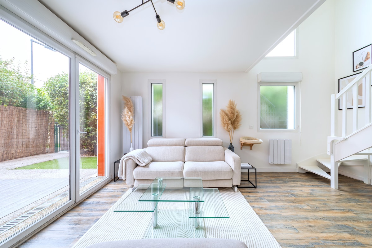 Discover this bright, newly renovated townhouse, designed by a professional designer, located in a charming courtyard in Montreuil, just minutes from Paris by metro. The home features a fully equipped kitchen and an ultra-bright living room, two bedrooms with double beds and large closets, a sofa bed to accommodate two additional guests, a bathroom with an Italian shower, and a terrace. The entire space is tastefully decorated with carefully selected lighting, plants, furniture, and tableware.