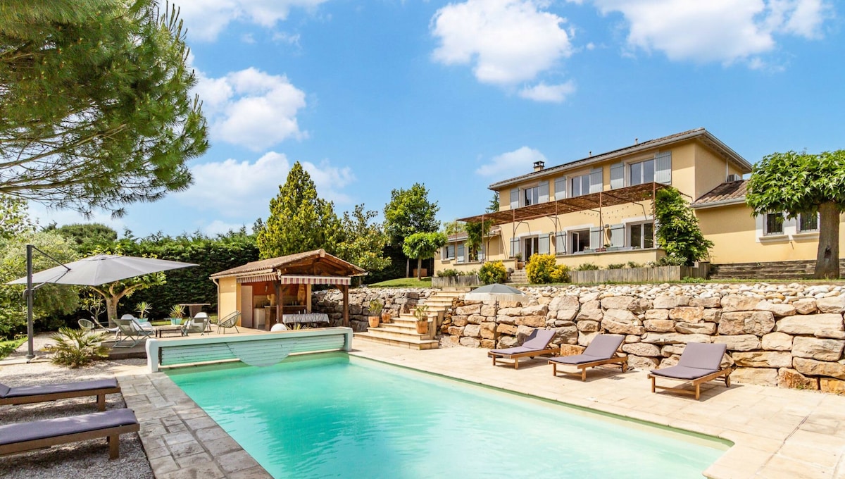 Привіт! Ми пропонуємо сучасну прибудинкову будівлю, побудовану в 2020 році, дуже добре обладнану, з окремою обладнаною ванною кімнатою. є крита тераса та басейн з підігрівом. Ця господарська будівля також обладнана відеопроєктором для перегляду фільмів (Netflix/Canal+) Помешкання розташоване в дуже затишній житловій зоні всього в 15 хвилинах від Ліона та всього в 2 хвилинах від входу/виходу з шосе, тому до нього дуже легко дістатися.