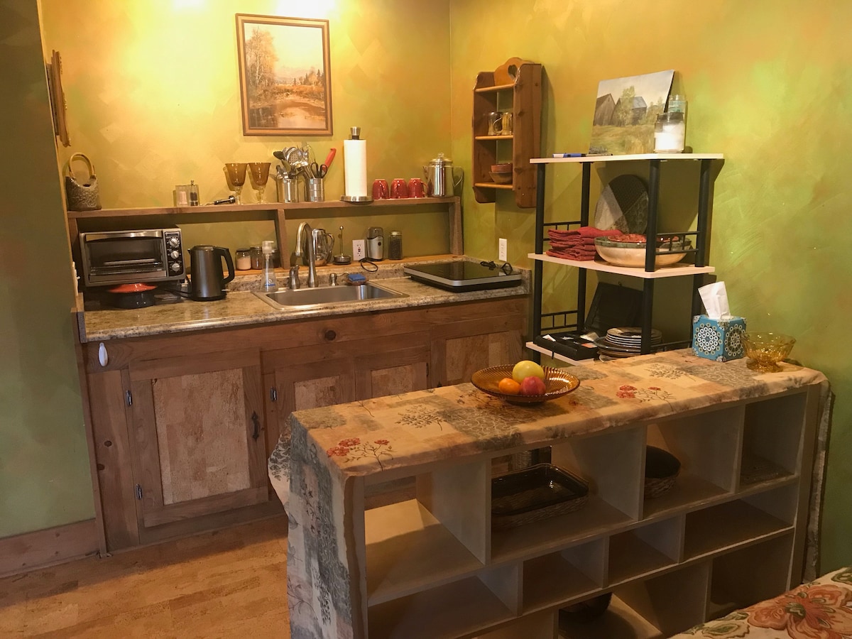 Затишне та затишне місце для окремої особи або пари! Приватність і спокійні краєвиди, прогулянки на березі річки та лісові стежки піддаються потоку натхнення, відпочинку та оновлення або романтичного відпочинку! Багато природного світла, зелені та червоно-зелені, золоті мийки на стінах зігрівають дух! Серед зручностей на березі річки - павільйон для йоги, лабіринт, байдарки, плавання, гамак, столи для пікніка, кола вогню. Гідромасажна ванна під зірками створює атмосферу відпочинку та життєдіяльності.