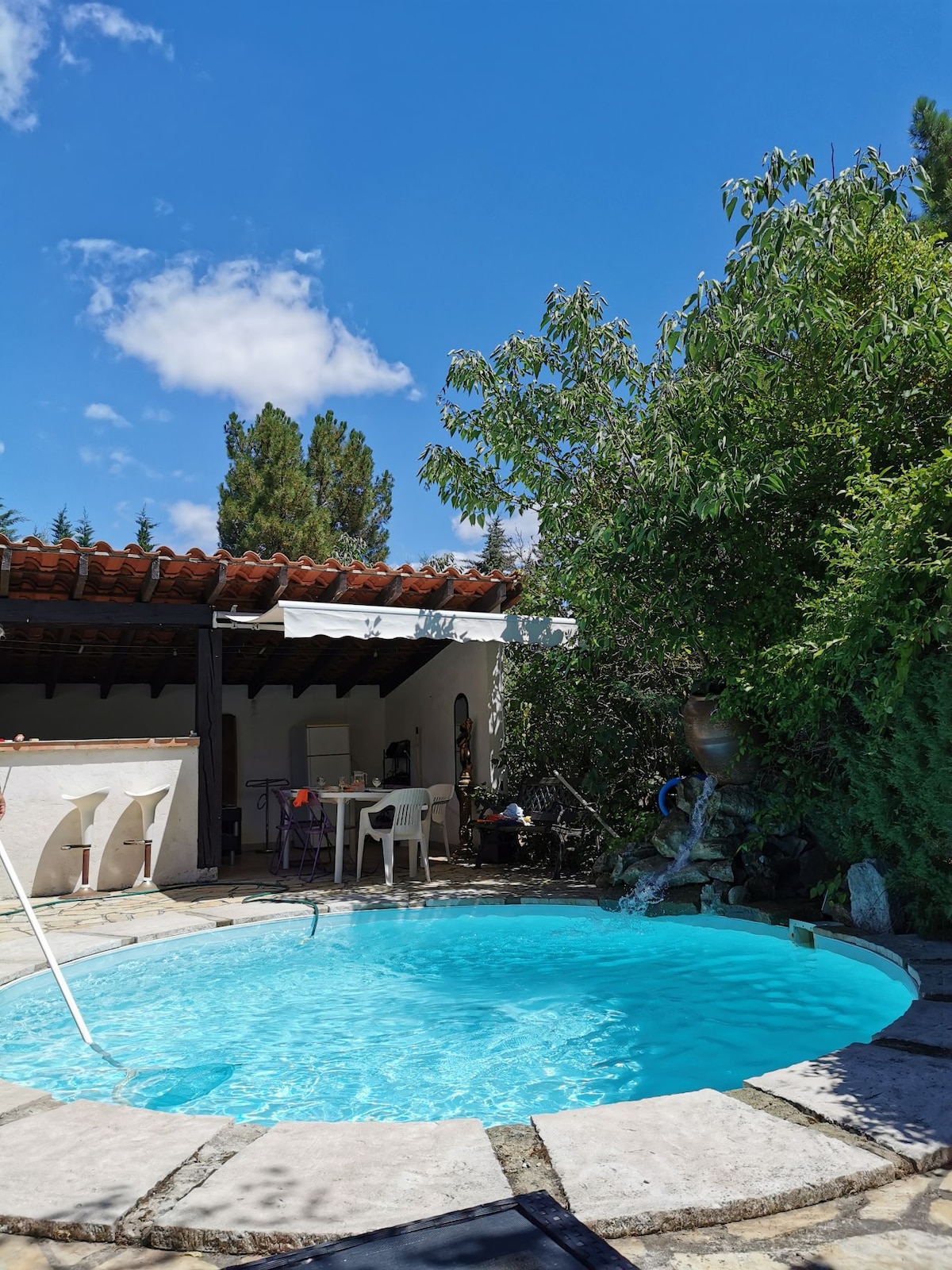 Чудовий прованський фермерський будинок із приватним басейном, дуже тихий, у селі в провінції Дром, за 10 км від Гріньяна. Вид на виноградники та гарно озеленений сад, цей старий невеликий млин повністю відреставрований та обладнаний кондиціонером, складається з: - На першому поверсі: вхід до вітальні/вітальня, відкрита кухня, кухня позаду, спальня та ванна кімната. - На першому поверсі: друга спальня та друга ванна кімната. Навіс для автомобіля з електричною розеткою. Вартість 10 євро/заряд.