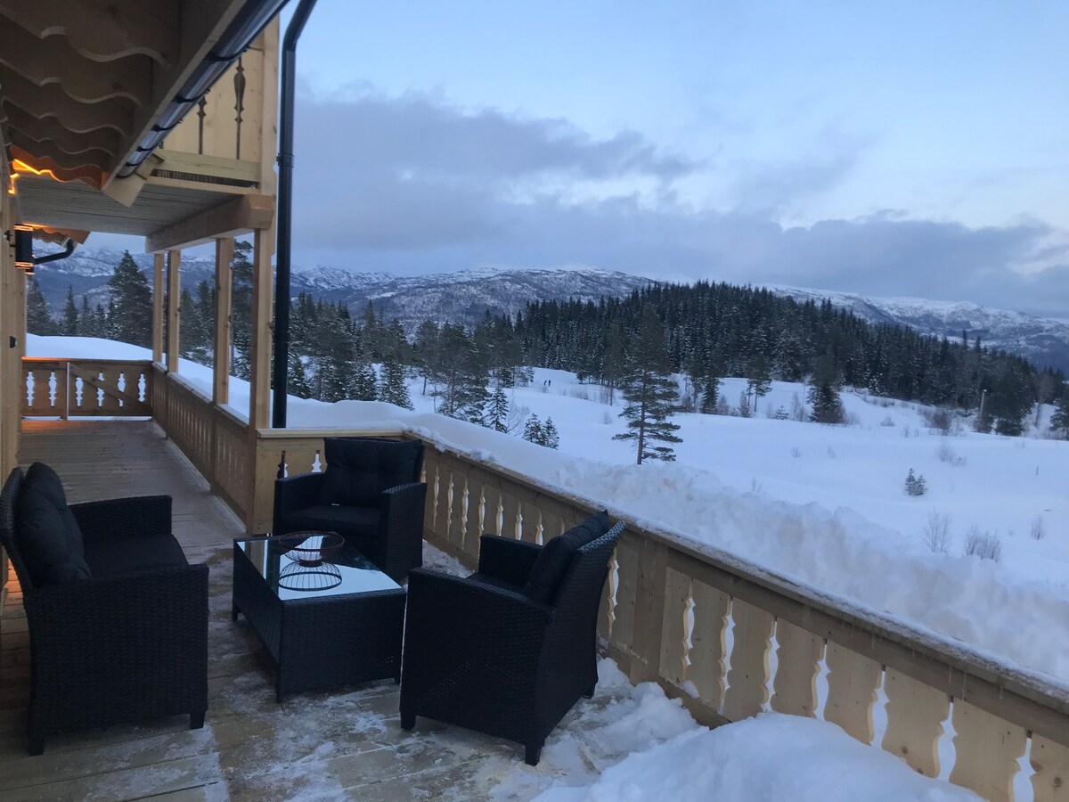 Velutstyrt hytte med panorama utsikt og terrasse