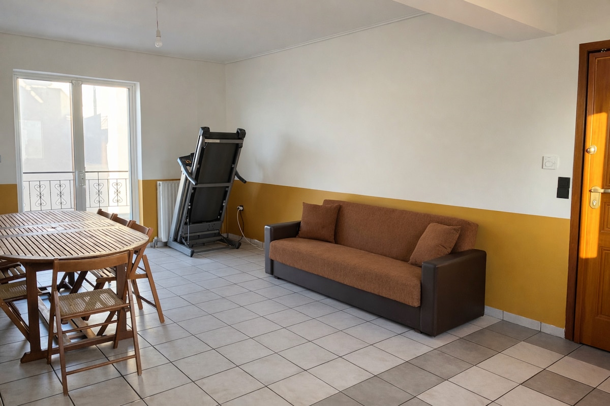 Квартира знаходиться майже в 20 хвилинах їзди від аеропорту Ел.Венізелос. Вона розташована на першому поверсі триповерхової будівлі з ліфтом. Великий сад, оточений деревами та іншими рослинами, де птахи та бджоли почуваються як удома. Район дуже тихий, недалеко від пляжу та лісу, де можна прогулятися та насолодитися чудовим видом.