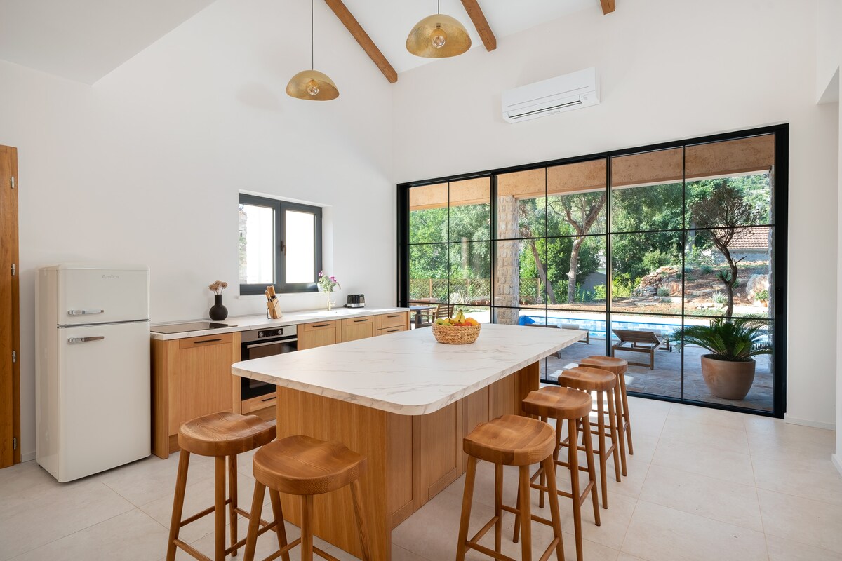 Villa Fisola is an amazing newly built property situated in the peaceful village of Svirče on the beautiful island of Hvar. Surrounded by unspoiled nature, offering panoramic views of the Adriatic Sea, and featuring a private swimming pool, it provides the perfect place to relax, unwind, and enjoy a truly stress-free vacation. With three elegantly furnished bedrooms, each equipped with its own en-suite bathroom, the villa comfortably accommodates up to six adults and two children.